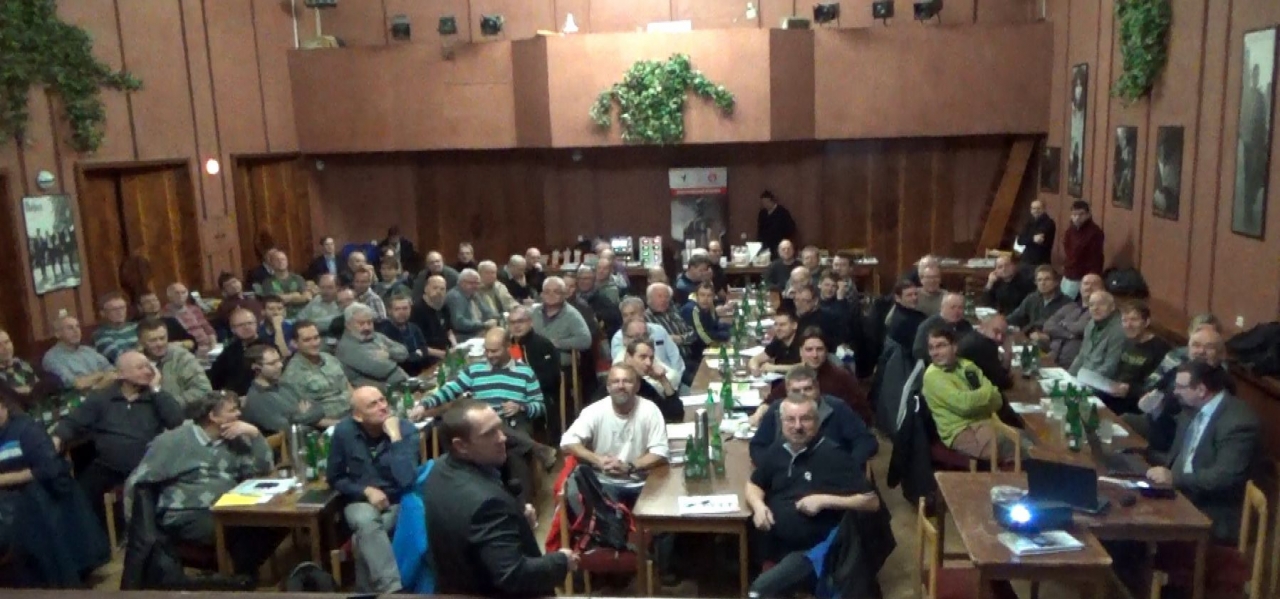 Obr. 3. Ing. Vladimír Macháček gestikulující odpovídá na dotazy účastníků při neformální diskusi (vpravo přednášející Milan Dolenský)