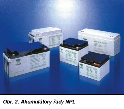 Uvedené vlastnosti zajišťují hospodárnost těchto akumulátorů ve srovnání s klasickými typy (s volně tekutým elektrolytem). Vyšší pořizovací náklady jsou kompenzovány levnějším provozem a nižšími nároky na prostor a způsob odvětrání. Mezi nejvíce používané bezúdržbové uzavřené olověné akumulátory YUASA patří série NP (obr. 1). Při optimálních provozních podmínkách (okolní teplota 20 °C, správné dobíjení, šetrné zacházení) mají životnost 5 let. Akumulátory série NP jsou určeny pro záložní režim, ve kterém je akumulátor stále „udržován“ na konstantním napětí a pokrývá pouze výpadky napájecí sítě. Vyrábějí se v rozsahu kapacit od 1 A·h do 65 A·h; jsou vhodné pro běžné zálohování. Mezi nejčastější aplikace patří malé systémy UPS, telefonní ústředny, zařízení pro bezdrátový přenos informací, systémy EPS a EZS, zdroje nouzového osvětlení, řídicí a kontrolní systémy, v menší míře speciální lékařské přístroje, videokamery, hračky a různé automaty. Tyto akumulátory lze také použít jako doplněk k solárním systémům. Pro náročnější účely zálohování (bankovní ústavy, nemocnice, státní instituce a úřady) jsou určeny akumulátory řady NPL (obr. 2), které mají díky speciální konstrukci a použitým materiálům dvojnásobnou životnost oproti akumulátorům série NP. Vyrábějí se v kapacitách od 24 A·h do 130 A·h. Zajímavostí je možnost záměny akumulátoru typu NP za NPL při zachování rozměrů a kapacity. Uživatel tak získá dvojnásobnou dobu životnosti svého záložního systému bez nutnosti zásahů do jeho mechanické konstrukce. Mezi speciální typy uzavřených akumulátorů patří série NPH a NPC. První z uvedených řad je vhodná pro pokrytí krátkodobých výpadků zálohovaného napětí. Díky odlišné konstrukci jsou akumulátory NPH schopny dodat v krátkém časovém úseku až o 50 % více energie oproti typům NP. Akumulátory NPC jsou určeny pro cyklický režim. Protože jsou konstruovány až pro 1 300 nabíjecích cyklů, nacházejí uplatnění v elektrických dopravních prostředcích, kde musí použitý akumulátor odolávat častému vybíjení a nabíjení. Pro průmyslové aplikace s velkými vybíjecími výkony a s vysokým napětím se vyrábějí akumulátory série EN nebo staniční řada UXL.