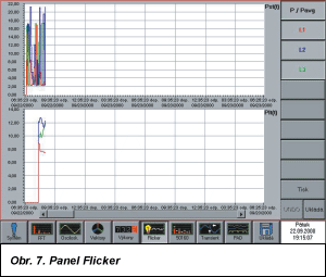 – celkové výkony a energie P, Q, S, AP, AQ, AS, – výkony a energie na základní harmonické P1, Q1, AP1, AQ1, – selektivní integrace odebírané a dodávané činné energie APin, APout, – selektivní integrace kapacitní a indukční jalové energie AQC, AQL, – celkový účiník PF a účiník na základní harmonické cos j, – celkové harmonické zkreslení napětí a proudu THDU, THDI, – frekvence; - měřič míhání (flickermetr) pro tři napětí;