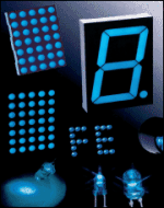 Z Velké Británie je na evropský trh nabízena široká řada standardních a speciálních světelných sedmisegmentových i bodových modrých displejů LED (v jedno- až čtyřmístné variantě). Výška znaků (7,6 až 200 mm) se i u jednoho displeje může různit – k symbolu jako horní nebo dolní index, možnost zobrazení desetinné čárky i tečky. V nabídce je i velké množství vysoce výkonných svítidel z modrých diod LED, včetně tradičních 30mm a 50mm modulů 5 × 7. V současnosti je k dispozici třímilimetrová a pětimilimetrová oblá (úhel světelného svazku od 15 do 60 stupňů) nebo eliptická verze. Jejich rozměry jsou od 4 × 2,7 mm do 5,8 × 4,6 mm. Standardní výkon oblých svítidel s 15° úhlem světelného svazku je více než 3 cd. |
