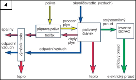 | Vodíkové hospodářství – nový základ energetické politiky EU Ing. Karel Kabeš Stále častěji se v médiích, ale i v odborných kruzích hovoří v souvislosti s omezenými zásobami fosilních paliv o nutnosti vývoje jiných energetických zdrojů. Jednou z dnes perspektivních možností je palivový článek (angl. fuel cell). Palivový článek se skládá z porézních elektrod, oddělených elektrolytem (obr. 1). V oblasti pórů elektrod vzniká tzv. třífázové rozhraní – elektroda, elektrolyt a regenty, vzniklé oxidací paliva a redukcí okysličovadla (obr. 2, obr. 3). Princip přeměny chemické energie na elektrickou je znám již z první poloviny 19. století (1839, anglický fyzik W. Grove), ale pojem „palivový článek„ teprve v roce 1889 poprvé použili Ludwig Mond a Charles Langer, kteří se pokusili vytvořit funkční článek pracující se vzduchem a svítiplynem. Jiné zdroje uvedějí Williama Whita Jacquese, který jako první použil za elektrolyt kyselinu fosforečnou. Palivové články jako zdroj elektrické energie však dlouho zůstávaly stranou pozornosti. Bylo tomu tak pro objev magnetické indukce a rovněž pro technickou úroveň parních strojů umožňujících výrobu elektrické energie v obrovském množství. Navíc pro mobilní aplikace byly vyvinuty snáze vyrobitelné elektrochemické zdroje proudu a akumulátory. Pokročilé aplikace palivových článků využívané v praxi se proto objevily až v 60. letech minulého století. V té době v USA použila NASA palivové články vyrobené ve firmě Pratt & Whitney jako zdroj elektřiny pro vesmírné moduly Apollo. To byl vlastně popud k nastartování intenzivního pokroku ve vývoji palivových článků v nejrůznějších zemích na univerzitách, v laboratořích i v průmyslu. V uplynulých třiceti letech proto vývoj v oboru palivových článků pokročil. Objevily se nové materiály i koncepce, ale posunuly se i priority světa – na ochranu životního prostředí je kladen mnohem větší důraz než před několika desítkami let. V současnosti lze zaznamenat stav jakési renesance palivových článků, které se stále více uplatňují v mnoha oblastech. Palivové články slouží např. jako záložní jednotky tam, kde by výpadek sítě mohl způsobit vážné problémy – v nemocnicích či armádních zařízení. Stále ve větší šíři pracují v automobilovém průmyslu. Využívají se na velmi odlehlých místech, kam je jednodušší dopravit palivo než položit distribuční kabel. V budoucnu by palivové články mohly konkurovat i elektrárnám. Tradiční palivové články používají čistý vodík, získávaný elektrolýzou z vody. Jako dostupnější, ale i průmyslově perspektivnější se jeví články využívající vodík vznikající při reformaci uhlovodíků. Technologií získávajících vodík je však mnohem více – jsou to alkalické články na bázi draslíku, kyseliny fosforečné, s polymerovou membránou, s mikromletým uhlíkem nebo s pevnými oxidy atd. Následující článek předkládá možnosti využití palivových článků zejména v dopravě a automobilovém průmyslu. Úvod Budou to již dva roky, co se koncepce vodíkového hospodářství stala základem, z kterého vychází nová energetická politika Evropské unie pro příští desetiletí. Proč se tato ústřední varianta, která se týká i celého výzkumu energie, vnucuje takovou silou? Před deseti lety to byla v nejlepším případě „ještě hodně vzdálená alternativa„, nebo spíše „perspektiva daleké budoucnosti„. Důraz nebyl kladen ani tak na samotný vodík jako spíše na jeho využití v palivových článcích. Technická možnost, o které široká veřejnost do té doby málo věděla, byla prezentována především jako řešení, díky kterému by např. automobilová doprava mohla v budoucnosti být „absolutně čistá“, tedy bez škodlivých výfukových plynů. Obr. 1. Palivový článek se skládá z porézních elektrod oddělených elektrolytem Epocha automobilů s elektrickým pohonem V době první ropné krize na počátku 70. let minulého století si společnost velmi dobře uvědomovala, že epocha „ropa pro všechno„ se v dopravě i v ostatních odvětvích už blíží ke svému konci. Potvrdilo se, že zdroje ropy se dříve nebo později vyčerpají a vážně se začalo vnímat také ohrožení lidstva vyvolané změnami klimatu především v důsledku hrozivě narůstajících emisí oxidu uhličitého a tzv. skleníkových plynů. Jako jedna z prvních alternativ řešení této situace v silniční dopravě byl vyvinut automobil s elektrickým pohonem – ve své čisté i hybridní podobě – který byl vybaven akumulátory. V tomto směru bylo uskutečněno množství výzkumných a vývojových prací, přičemž bylo dosaženo pozoruhodných výsledků. Dokonce bylo vyrobeno mnoho automobilů s elektrickým pohonem, z nichž některé jsou dodnes v provozu. Generace automobilů s čistě elektrickým pohonem se mimořádně osvědčila v boji proti znečištění ovzduší v městských aglomeracích, avšak narážela na hranice použitelnosti z hlediska autonomie pohybu a rovněž obtíží při nabíjení. Proto byla dána přednost hybridním automobilům (s kombinovaným pohonem). Ty jsou jistě v mnoha ohledech zajímavé, ale závislost na fosilních palivech neodstraňují, pouze zmenšují. Obr. 2. V oblasti pórů elektrod vzniká tzv. třífázové rozhraní – elektroda, elektrolyt a regenty, vzniklé oxidací paliva a redukcí okysličovadla Přechod na palivové články Princip palivového článku byl poprvé v praxi využit v 60. letech v rámci kosmických programů Gemini a Apollo. O mnoho let později se používání palivových článků začalo prosazovat jako mimořádně lákavá alternativa místo nabíjecích akumulátorů v autom