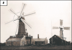 Obr. 1. Sloupový větrný mlýn (Velké Těšany, okr. Kroměříž) – do aktivní pozice proti větru se natáčel celý objekt, uložený na středovém sloupu (foto autor) Větrné mlýny Třebaže klasické větrné mlýny nevyráběly elektrickou energii, je na místě zmínit je z hlediska základního principu přeměny síly větru v mechanickou práci a z hlediska způsobů regulace chodu těchto zařízení. Zatímco větrné mlýny využívaly tlak větru na plochu křídel nebo lopatek, využívají větrné elektrárny aerodynamických vlastností přesně definovaných profilů křídel. Větrné mlýny se proti větru natáčely celé (tzv. sloupové větrné mlýny – obr. 1), popř. se natáčela jen jejich střešní část s křídly (tzv. holandské mlýny – obr. 2). Natáčení bylo ovládáno pomocí jednoduchých vnějších nebo vnitřních mechanismů ručně, pouze v poslední etapě jejich existence byly holandské mlýny vybaveny i automatickým natáčením střešní části. Výkon větrných mlýnů byl regulován přidáváním nebo ubíráním výplně křídel. U větrných elektráren se proti větru natáčí gondola se strojovnou i křídly a u některých typů je provoz regulován i natáčením křídel podle jejich podélné osy. Obr. 2. Holandský větrný mlýn (Lesná u Znojma – před rekonstrukcí na restauraci) – proti větru se natáčela jen střecha s osou a křídly (foto autor)