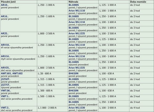 Tam, kde je nutné koncepční řešení celého rozváděče nebo kde údržba už nestačí, je možné nabídnout náhradu nebo retrofit jističe. Retrofitem se myslí rychlá a profesionální náhrada staršího jističe bez nutnosti upravovat rozváděč. Servis OEZ má s retrofity starších přístrojů bohaté zkušenosti a nabízí mnoho různých provedení. Pro přehled jsou uvedeny v tabulce.