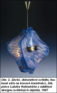 | 145. výročí sklářské školy v Kamenickém Šenově Antonín Langhamer Autor fotografií: Lubomír Hána Střední uměleckoprůmyslová škola sklářská v Kamenickém Šenově ani při stém čtyřicátém pátém výročí svého založení neporušila tradici pravidelně konaných výstav v pětiletých a desetiletých intervalech. Tentokrát se připomenula výstavami v Severočeském muzeu v Liberci a v Glassicentru v Kamenickém Šenově s jednoročním zpožděním, ale o to slavnostněji, navíc k výročí vydala 128stránkovou publikaci se 150 reprodukcemi. Kdykoliv se tato škola připomíná a hodnotí, upozorňuje se na její zásluhy o rozvoj českého sklářství od poloviny 19. století, jeho ruční výroby a v posledních letech také ateliérové autorské tvorby. Vznikla roku 1856, aby místní rytce a malíře skla učila kreslit a modelovat, protože zdejší výroba založená převážně na dílenské ruční práci právě tyto dovednosti potřebovala, a dala jí tak možnost vyrovnat se konkurenci v zahraničí. Jak ale bylo čím dál tím potřebnější reagovat na proměny životního stylu a vyrovnávat se i s rostoucím podílem strojní výroby, měnila se i školní výuka. Přibývalo v ní všeobecných i odborných předmětů. Připomínají-li se zásluhy školy o rozvoj české sklářské výroby, zapomíná se na její opakovanou snahu ovlivnit také výrobu lustrů. Když škola vznikla, nejdříve se spokojila s tím, že žáky místní obecné školy, své vlastní žáky v řádném denním studiu, sklářské tovaryše i jejich mistry, kteří docházeli v neděli, naučí kreslit a modelovat podle předloh, popř. navrhovat nové dekory s rostlinnými, ornamentálními i figurálními motivy, předurčené pro malbu a rytinu na skle. Malovat a rýt sklo je až do osmdesátých let neučila. Předpokládalo se, že se řemeslu naučí od svých mistrů. První dílny byly zřízeny až v roce 1878, kdy vzniklo oddělení rytí kovových raznic, lití kovů, cizelování a galvanizování s cílem vychovat dělníky a snad i mistry pro výrobce lustrů. Ověskové lustry se zde vyráběly a do mnoha evropských zemí vyvážely již od dvacátých let 18. století. Populární se staly rozmanitými velikostmi a tvary ověsů z českého křišťálového skla. Zdokonalené kovové konstrukce a ozdobné kovové prvky žádali zákazníci až později. V kraji ale odborníci na práci s kovem nebyli. Když počátkem osmdesátých let 19. století škola zřídila oddělení pro rytí a malování skla, znamenité dílenské mistry našla v místě nebo v okolí. Oddělení rytí a lití kovů, cizelování a galvanizování od roku 1878 vedli přední vídeňští medailéři Josef a Johann Würbelové, odborný učitel ze Štýru Sebastian Teysch a akademický medailér z Vídně Karl Pugl. Od roku 1880 se škola jmenovala Odborná škola pro sklářství a kovoprůmysl. Když zájem o absolventy oddělení ustal, bylo toto oddělení zrušeno. Roku 1893 se změnil i název školy; stala se z ní Odborná škola pro sklářský průmysl. S výrobci lustrů spolupracovat nepřestala a ještě ve dvacátých letech minulého století uváděla firmu Elias Palme, největšího místního výrobce lustrů, mezi předními s ní spolupracujícími podniky. Po skončení druhé světové války přišli do Kamenického Šenova první čeští sklářští výtvarníci. Od německých předchůdců převzali školu, obnovili v ní vyučování, navázali na tradice, ale vlastní tvorbou jim dali nový, pro české sklářství dodnes podstatný impuls. Zaměřili se na sklářskou problematiku, ale protože také výroba lustrů měla nedostatek českých odborníků i tvůrčích podnětů, škola chtěla otevřít speciální lustrařské oddělení. Neuspěla s ním přesto, že se její návrh opíral o přesvědčivé, průmyslem zdůvodněné argumenty. Začátkem padesátých let dvacátého století, když byl u nás lehký a spotřební průmysl potlačován, zanikly také sklářské školy v Kamenickém Šenově a Novém Boru. Nedlouho po zrušení šenovské školy se začalo uvažovat o jejím obnovení. V září 1957 se stala pobočkou Střední průmyslové školy sklářské v Novém Boru (po zrušení výtvarné školy se tam přestěhovala chemicko-technologická škola z Chřibské). Začínala s oddělením konstrukce a tvorby svítidel a malování skla. Vzniklo první oddělení specializované na osvětlovací sklo. V devadesátých letech minulého století bylo přejmenováno na design světelných objektů. Teprve rok po obnovení výuky v Kamenickém Šenově vzniklo oddělení broušeného skla a koncem šedesátých let oddělení rytého skla. V roce 1962 se z pobočky stala samostatná Střední průmyslová škola sklářská. V roce 1981 se přejmenovala na Střední uměleckoprůmyslovou školu sklářskou. Prvním výtvarníkem lustrařského oddělení byl absolvent železnobrodské sklářské školy a ateliéru prof. K. Štipla na Vysoké škole uměleckoprůmyslové v Praze Stanislav Kučera (1925–1994) a zůstal jím až do roku 1988. Prvním dílenským učitelem byl Vladimír Volšický. V roce 1967 začal s lustrařským oddělením spolupracovat Ing. Petr Malý (*1941), absolvent Vysoké školy strojní a textilní v Liberci, konstruktér Skloprojektu Praha a konstruktér n. p. Lustry v Kamenickém Šenově. V následujícím roce se stal interním učitelem a je jím dosud. Současně nastoupil nový dílenský učitel Emanuel Černý. V roce 1986 se po Kučerovi stal výtvarníkem oddělení Jaroslav Pulkrábek (1958–1999), absolvent Střední uměleckoprůmyslové školy v Uherském Hradišti a ateliéru tvarovaní strojů a nástrojů Vysoké školy uměleckoprůmyslové ve Zlíně. Zůstal jím až do své předčasné smrti. Od roku 1997 je dílenským učitelem oddělení Václav Ze