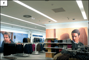 Koncepce prodejen Marks & Spencer vychází z dlouholetých zkušeností tohoto obchodního řetězce po celém světě, nevyjímaje např. Spojené arabské emiráty. V interiéru se promítají nejnovější designové trendy a jsou použity zajímavé a mnohdy novátorské materiály. Také u nově otevíraných obchodů Marks & Spencer v České republice je vždy patrný velký pokrok v celkovém architektonickém návrhu i rozsahu a kvalitě nabízených služeb. Zatímco kavárna Café Revive a doplňkový prodej potravin v Melantrichu byly u nás v obdobně zaměřeném obchodě služby dosud neznámé, v každé další prodejně jsou již její nedílnou součástí a podílejí se na vytváření celkového image značky Marks & Spencer. V prodejně na Chodově může zákazník kromě pestrého sortimentu oblečení, bytových doplňků, potravin nebo kavárny využít též nabídku vlastní pekárny s množstvím originálního pečiva. Obr. 2. M&S Melantrich, podsvětlený stěnový panel S vývojem interiéru prodejen doznával nemalých změn také koncept osvětlení. Ve druhé pražské prodejně v Metropoli Zličín byli jeho vypracováním pověřeni ještě architekti spolupracující s mateřskou firmou ve Velké Británii. Již k této realizaci byla přizvána i firma Horizont jako dodavatel osvětlení a pro další nově otevírané prodejny též zpracovatel světelnětechnického projektu. Vodítkem pro návrh osvětlení byly požadavky investora a architektů na celkový vzhled prodejny, jeho originalitu, světelnou pohodu a rovněž na tvary a provedení jednotlivých svítidel. Velký důraz byl kladen na požadovanou intenzitu osvětlení jednotlivých ploch (prodejna, obvodové stěny, výlohy a výstavní místa), rovnoměrnost osvětlení na jedné straně a jeho přiměřenou dynamičnost na straně druhé. Nezanedbatelným kritériem bylo také věrné podání barev, ochrana před poškozujícími účinky světla, ale i celková ekonomičnost provozu osvětlovacích soustav. Proto byla zvolena svítidla a světelné zdroje od renomovaných výrobců, především od firem Ruco Licht a Ansorg, kterou Horizont v České republice zastupuje. Tento výrobce již několik let patří mezi uznávanou špičku ohledně svítidel pro osvětlení komerčních objektů. Prodejní plochy Základní hladinu osvětlení prodejních ploch ve starších obchodech zajišťují vestavná svítidla osazená kompaktními zářivkami se širokým vyzařováním. V novějších obchodech, počínaje Novým Smíchovem, byly po vzoru nejmodernějších prodejen řetězce Marks & Spencer ve Velké Británii navrženy a na zakázku firmou Ruco Licht vyrobeny kontinuální světelné kanály probíhající napříč celou prodejnou (obr. 1). Svíticí pásy jsou konstruovány tak, aby vytvářely dojem spojitě svítící linie bez patrných návazností jednotlivých světelných zdrojů. Těmi jsou v tomto případě moderní zářivky T5 s elektronickými předřadníky. Polykarbonát, který zakrývá světelné kanály, má vedle zajímavého vzhledu také vynikající vlastnosti ohledně rozptylu světla a jeho propustnosti. Obr. 4. M&S Melantrich, vstupní pasáž Ke zvýrazňujícímu osvětlení prodejních stojanů, obvodových stěn, výloh a exponovaných výstavních míst jsou převážně použita vestavná svítidla osazená halogenidovými výbojkami s UV filtrem a možností směrování. Prostorové stojany tak osvětlují svítidla Cardo CLG a Punta s různě širokými vyzařovacími charakteristikami a s možností natočení ve dvou osách. V atriu se skleněnou střechou v přízemí Melantrichu je nahradila svítidla Boxx na zavěšených tříokruhových napájecích lištách (obr. 2). Konstrukce optiky těchto svítidel umožňuje plynule měnit rozložení svítivosti, a stejné svítidlo je tak možné použít jako bodové nebo pro osvětlení větší plochy. Pro důležité osvětlení výloh jsou využita kompaktní svítidla Brick na tříokruhových přisazených napájecích lištách montovaných na strop těsně za výkladem a dále boční osvětlení svítidly Lucent. Obě svítidla jsou osazena 70W halogenidovými výbojkami. Požadavek investora na zdůraznění obvodových stěn prodejny, které zároveň fungují jako prodejní plochy, splňují svítidla Bola s asymetrickým vyzařováním potřebným pro rovnoměrné osvětlení stěny po celé její výšce. Vhodným umístěním těchto svítidel a díky intenzivnějšímu osvětlení tak obvodové stěny opticky vystupují ze zbývající plochy prodejny. Dalším prvkem přispívajícím ke zvýraznění plasticity a k optickému odlehčení je podsvětlení obvodu jednotlivých stěnových prodejních panelů (obr. 3). V některých případech je celá čelní plocha panelů podsvětlena a tvoří tak světelný box, na který je možné aplikovat snadno obměnitelnou grafiku (obr. 2). Použitá lineární zářivková svítidla jsou uspořádána se vzájemným překrytím tak, aby podsvětlení bylo rovnoměrné, bez patrné návaznosti jednotlivých zářivek. Světelné zdroje mají oproti zbytku prodejny studený odstín. Podsvětlení se dále uplatňuje u výloh a v „kapsách„ podhledu. Obr. 5. M&S Centrum Chodov, Café Revive Zajímavým architektonickým prvkem prodejny Melantrich je původní dochovaný průjezd do dvora s bohatou štukovou výzdobou, jenž je nyní hlavní vstupní pasáží z Václavského náměstí. Kolekci Per Una ve výklencích pasáže osvětlují přisazená svítidla Cardo CPI, strop je osvětlen výbojkovými svítidly Swing s integrovanou pomocnou halogenovou žárovkou pro rychlejší start (obr. 4). Počínaje prodejnou na Smíchově se z prodejní plochy vyčlenilo samostatné oddělení dámského spodního prádla, které vyžadovalo specifické, komornější osvětlení. Hladina osvětlenosti je zde oproti ostatním ploch