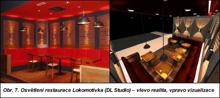 Koncepce osvětlení jednotlivých prostor Vstupní hala je prostor se stupňovitým stropem, který tvoří „komín„ pro eskalátory vedoucí do čtvrtého patra. V místech, kde je strop nejvyšší, byl při volbě konečného řešení brán ohled na náročnost údržby svítidel. Tam, kde jsou stropy přístupné, což je úroveň stropu druhého patra, byla zvolena kruhová svítidla CCT a Mondial (Targetti) se zdrojem HCI, která jsou vyvěšena do konstrukce stropu a zalícována do subtilního hliníkového podhledu. Prostor eskalátorů je osvětlen nástěnnými svítidly Oyster (Luxo). Jejich přesná optika omezuje oslnění návštěvníků jedoucích po eskalátorech a zároveň zajišťuje rovnoměrnou nepřímou distribuci světelného toku. Nástupní prostor eskalátorů je dále přisvětlen zavěšenými svítidly ve čtvrtém patře. Jejich umístění je tomuto účelu přizpůsobeno. Ochoz v prvním patře a vnější prstenec v druhém patře jsou tvořeny speciálním lamelovým stropem, tzv. žiletkami, o rozteči 600 mm. Záměrem architekta bylo použít svítidla, jejichž konstrukční výška bude přizpůsobena výšce lamel a která prostřednictvím průsvitného prstence v plášti zároveň lamely prosvětlí. Pro tento účel bylo upraveno standardní přisazené svítidlo Dese (Targetti). Vzhledem k malé instalační výšce svítidel musel být kladen důraz na zachování světelného komfortu a minimálního oslnění. To optika svítidel Dese bezpečně splňuje. Svítidla byla z hlediska příkonu dimenzována podle rozmístění na 70 W HCI TS, popř. 150 W HCI TS. Výsledný efekt splnil představy architekta i požadavky na intenzitu osvětlení daných prostor. Prosklený prostor druhého patra a galerie ve třetím patře jsou osvětleny subtilními světlomety Techno (Simes), osazenými zdroji HQI-TS 250 W a instalovanými po obvodu haly nad okny kanceláří. V úrovni stropu druhého patra po obvodu celé haly, kde není vůbec žádný prostor pro instalaci běžných svítidel, byla požadována kontinuální světelná linie s rovnoměrnou distribucí světelného toku bez přerušení. Pro splnění tohoto požadavku bylo vybráno a instalováno liniové osvětlení Minicove (Targetti), osazené xenonovými žárovkami s životem 20 000 h. Součástí uvedeného prostoru je i skryté osvětlení květinové výzdoby, osazené speciálními zářivkami Fluora (Osram). Zmíněné osvětlení bylo instalováno do zábradlí ochozu třetího patra. Ochozy okolo celého čtvrtého patra jsou řešeny s viditelně instalovaným technologickým vybavením bez použití podhledů. Této koncepci odpovídá i design zvolených svítidel. Základní parametry opět zněly: minimální výška spodní hrany svítidla nad zemí 3,5 m, technologickým vybavením a konstrukcí stropu přesně vymezené instalační prostory pro svítidla. Pro tento účel bylo jako nejvhodnější vybráno závěsné průmyslové svítidlo Delta (Casarano) v kompletně hliníkovém provedení, s rotačně symetrickou širokou charakteristikou, osazené výbojkou HQI-E 150 W. Svítidla byla uzpůsobena pro průchozí montáž a byla doplněna bezpečnostním tvrzeným sklem. V prostorách, kde pro technologické vybavení nebo konstrukci stropu (přechod stropu do schodnic arény) nebylo možné tato svítidla osadit, byla využita hliníková nástěnná svítidla Triangolo Diamond, osazená výbojkou HQI-TS 150 W a diamantovou čočkou, zajišťující rovnoměrné rozložení světelných paprsků v úhlu 180° horizontálně. Spojení průmyslového charakteru prostor a zvoleného osvětlení vytváří velice příjemný interiér. Osvětlení klubového patra bylo řešeno podle požadavků architektů – malá konstrukční výška svítidel, minimální oslnění, neutrální design a materiál svítidla vhodně zapadající do interiéru. V souladu s těmito principy byla vybrána svítidla CCT Flash (Targetti), doplněná saténovým krycím sklem a skleněným dekorativním rámečkem. Veškerá svítidla v tomto patře jsou stmívána systémem EIB. Sky boxy. Pro základní osvětlení tzv. sky boxů byla zvolena kruhová vestavná svítidla Wila o průměru 400 mm a zápustné hloubce 100 mm, osazená kruhovou zářivkou T5 55 W. Svítidla jsou stmívána systémem EIB. Byla speciálně vybrána pro možnost integrovat další technické vybavení přímo do tělesa svítidla. Přednost byla dána verzi s reproduktorem, sprinklerovou jednotkou a s nouzovým modulem zapojeným do systému CEAG. Světelný zdroj 55 W byl instalován proto, aby místnost mohla být využita i jako kancelář. Základní osvětlení bylo doplněno akcentovými svítidly Ecco (Wever&Ducre). Ostatní svítidla v uvedených prostorách byla součástí dodávky „amerických interiérů“, zastřešené firmou Techo. Restaurace Lokomotivka byla z architektonického hlediska řešena odděleně v ateliéru DL Studio, s minimální návazností na celkovou koncepci haly. Náš návrh svítidel vycházel ze studie architekta, která byla doplněna vizualizacemi prostoru. Na základě vizualizací jsme podle představ architekta vybrali svítidla. Určenému designu nejlépe odpovídala svítidla z programu Wever&Ducre, doplněná speciálními výrobky Flos, Delta Light a TreCiLuce. Exteriérové osvětlení loubí okolo haly využívá rotační svítidla zapuštěná v hliníkovém podhledu a vyvěšená na speciálním závěsu do konstrukce stropu. Jsou to svítidla Megazip (Simes), jež jsou osazena zdrojem 150 W HCI-T s pískovaným sklem a s krytím IP65. Přestože jsou umístěna v loubí (a tedy chráněna před vniknutím vody), zvolili jsme vyšší stupeň krytí z důvodu maximálního zamezení vniku nečistot a drobného hmyzu, který je často příčinou nutnosti příliš časté údržby svítidel. Zvolená svítidla odpovídají požadavku na vysok
