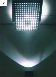 Obr. 9. Svítidlo Era LUNA Velkoplošné svítidlo vyráběné v závěsné, vestavné a přisazené verzi. Jako světelně činná plocha je použita speciální fólie zajišťující dokonalý difuzní rozptyl světla. LUNA se sériově vyrábí v největším rozměru 2 × 2 m a v modulárním systému umožňuje konstrukci rozsáhlých světelných ploch. LUNA je zajímavá i ve variantě RGB, kdy měnící se barevný tón přes celé barevné spektrum umožňuje dokonale dokreslit atmosféru osvětlovaného interiéru. MIRO Systém sekundárního osvětlení z odrazného zrcadla a projektoru. Zrcadlo je vytvořeno z odrazných segmentů 100 × 100 mm. Podle parametrů prostoru a požadavků na osvětlení se spojením základních segmentů vytvoří zrcadlo potřebné velikosti. Nastavením kloubového upevňovacího systému zrcadla se dosáhne požadovaných světelně-technických parametrů na ploše.