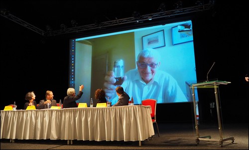 Obr. 2. Prof. Ing. Karel Sokanský, CSc., odborný garant konference, který se nemohl zúčastnit osobně, účastníky pozdravil prostřednictvím audiovizuální techniky