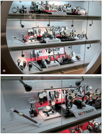 Jsou vitríny, kde je světelný koncept řešen na skutečně vysoké úrovni (obr. 2a, b). Pro vnitřní osvětlení se ale nejčastěji volí lineární LED. Obvykle jde o nejjednodušší instalaci (na povrchu nábytku) s plošným rozptýleným světelným tokem. Při instalaci zpravidla levných linek s nízkou hodnotou podání barev (Ra 70 až 80) vystavené zboží spíše trpí. Rovnoměrný, málo kvalitní světelný tok nenechá vyniknout tvarům, materiálu ani barvám výrobků (obr. 3).