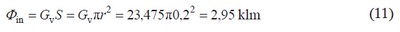 Za pomoci vztahu (8) se vypočítá celkový tok vstupující do světlovodu